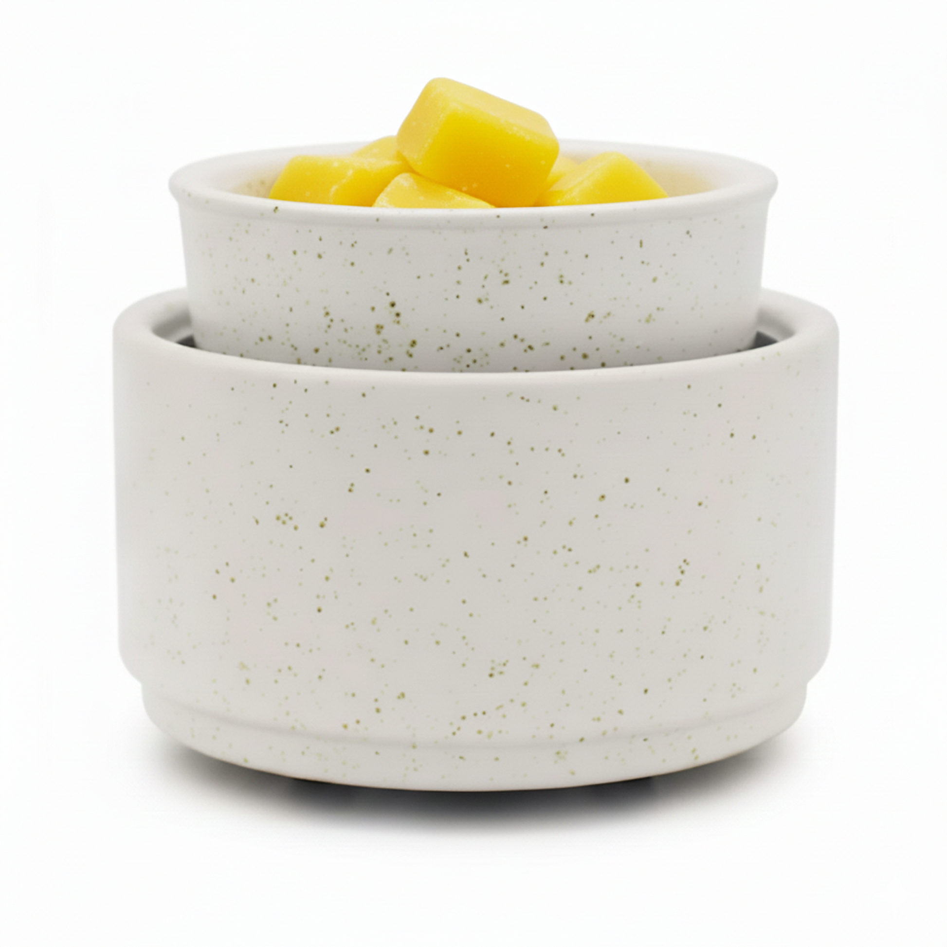 This 2-in-1 electric wax melt warmer is designed for wax melts and jar candles, giving you flexible fragrance options in one piece. The botanical ceramic design and flameless heating provide a safe, soot-free alternative to traditional candles, while the inline switch on the cable makes it easy to turn on and off. A removable ceramic warming plate allows for simple cleaning and effortless switching between melts and jars—just clean, reliable heat for everyday home fragrance.